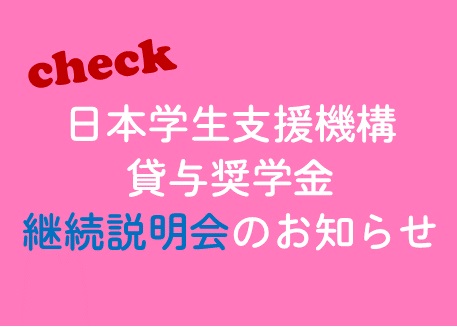 【奨学金関連】日本学生支援機構奨学金 貸与(借りる)奨学金 継続説明会のお知らせ