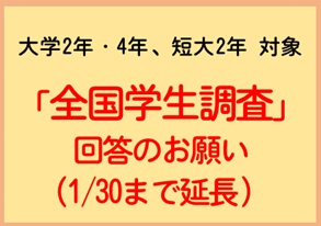 (1/30まで締切延長)【大学2年・4年、短大2年対象】「全国学生調査」回答のお願い