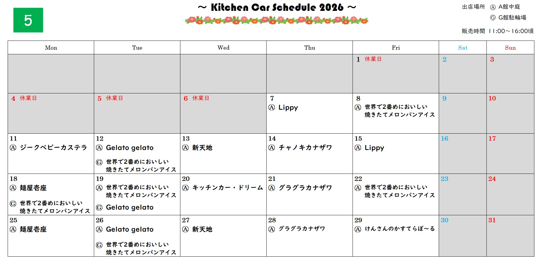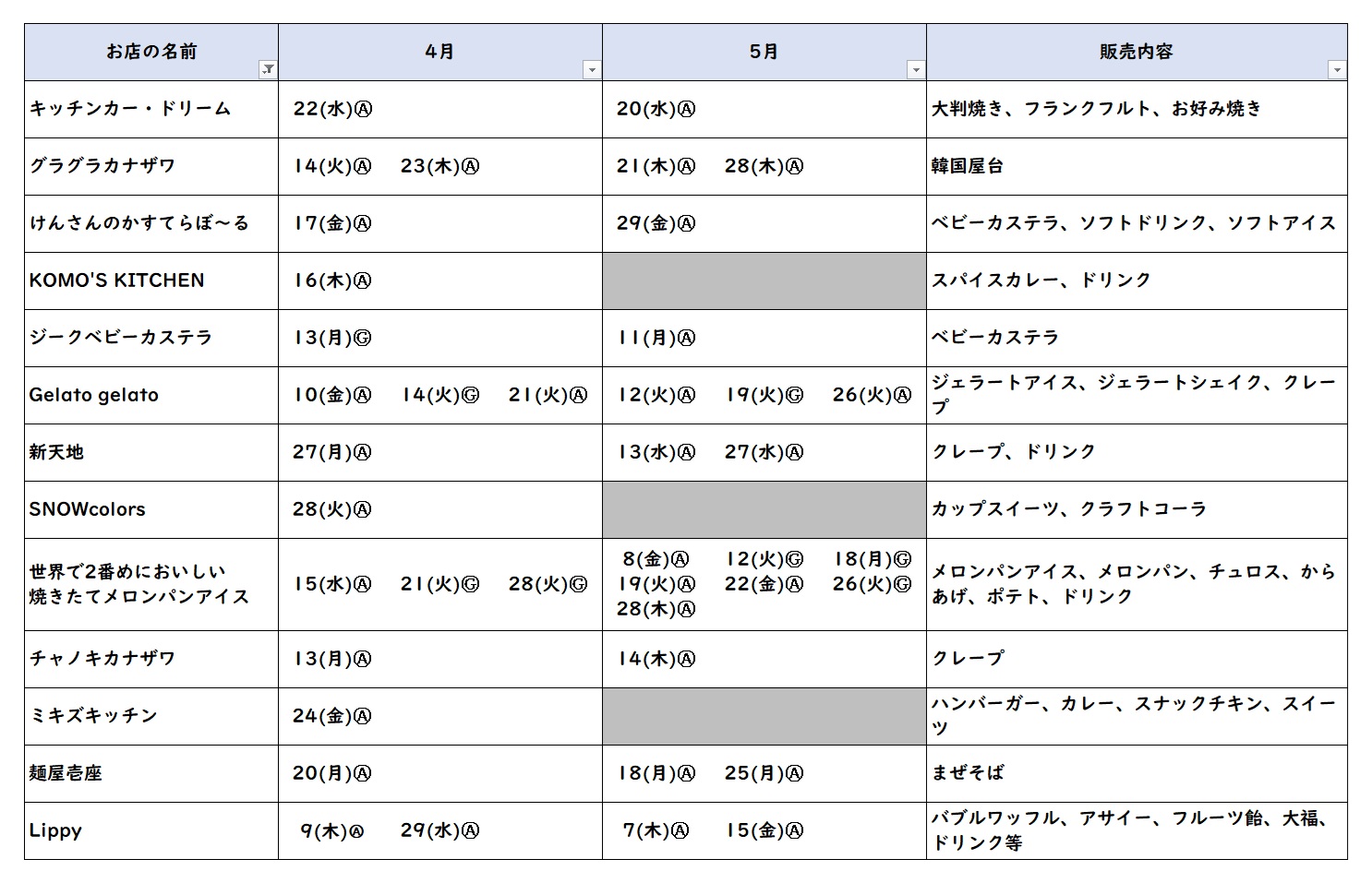 悪天候等により、急遽販売を取りやめたり、メニューが変更となることもあります。